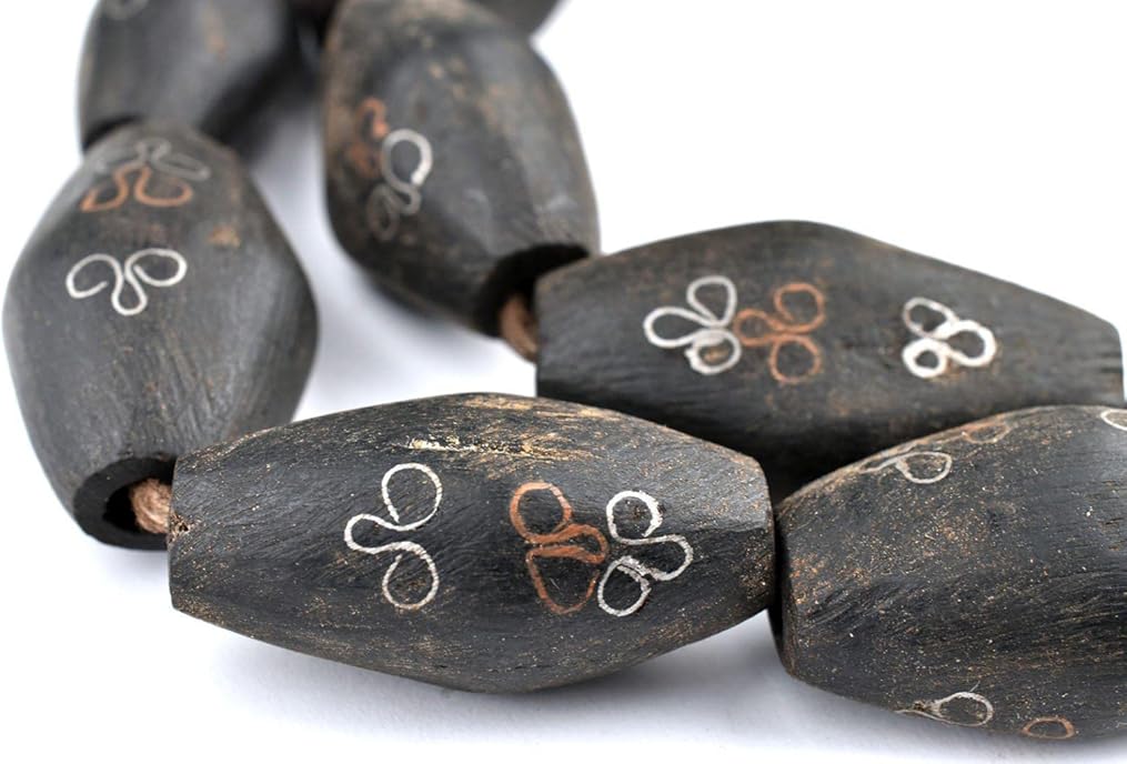 The Bead Chest Mauritanian Inlaid Ebony Wood Bicone Beads 34x20mm African Black Large Hole 30 Inch Strand Handmade