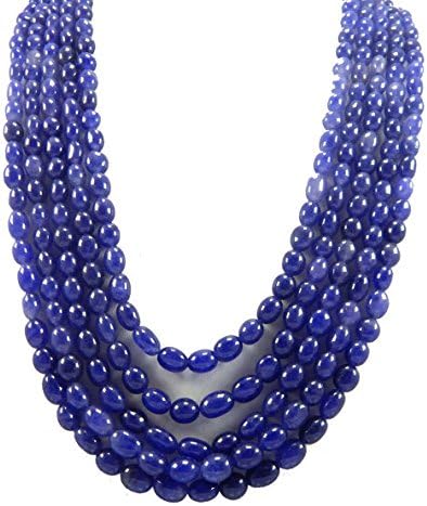 5 Strand 19" 6-9 MM Smooth Quartz Beads Blue Sapphire Quartz Oval Beaded Necklace