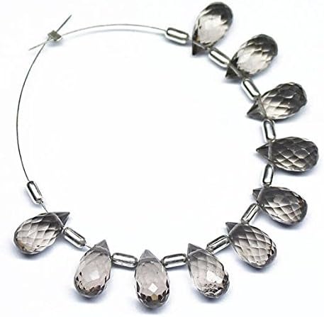 LKBEADS Smoky Quartz Faceted Tear Drop Briolette Gemstone Loose Craft Beads 5 Pair 10mm x 5mm