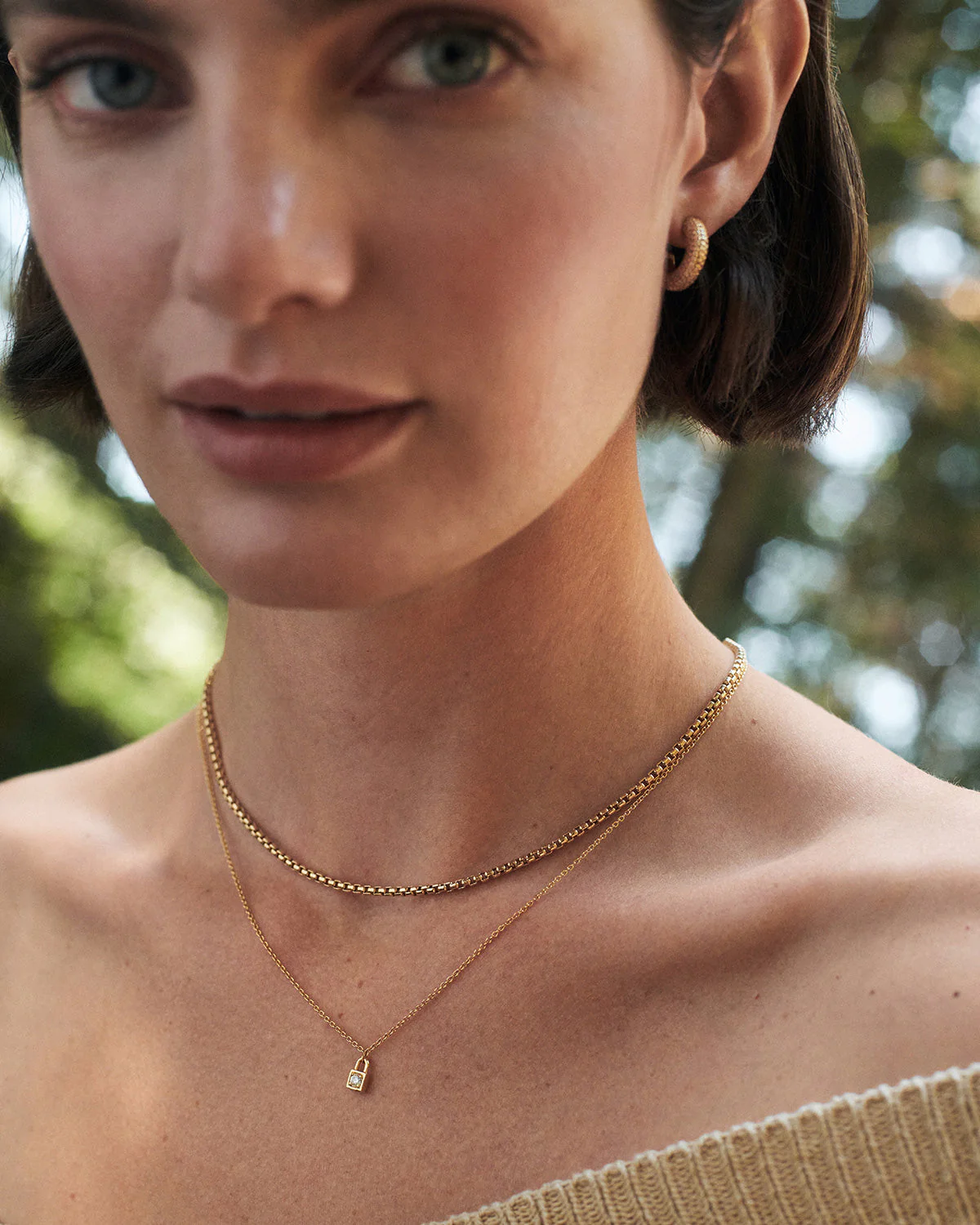 GRID Yellow Gold Box Chain Necklace