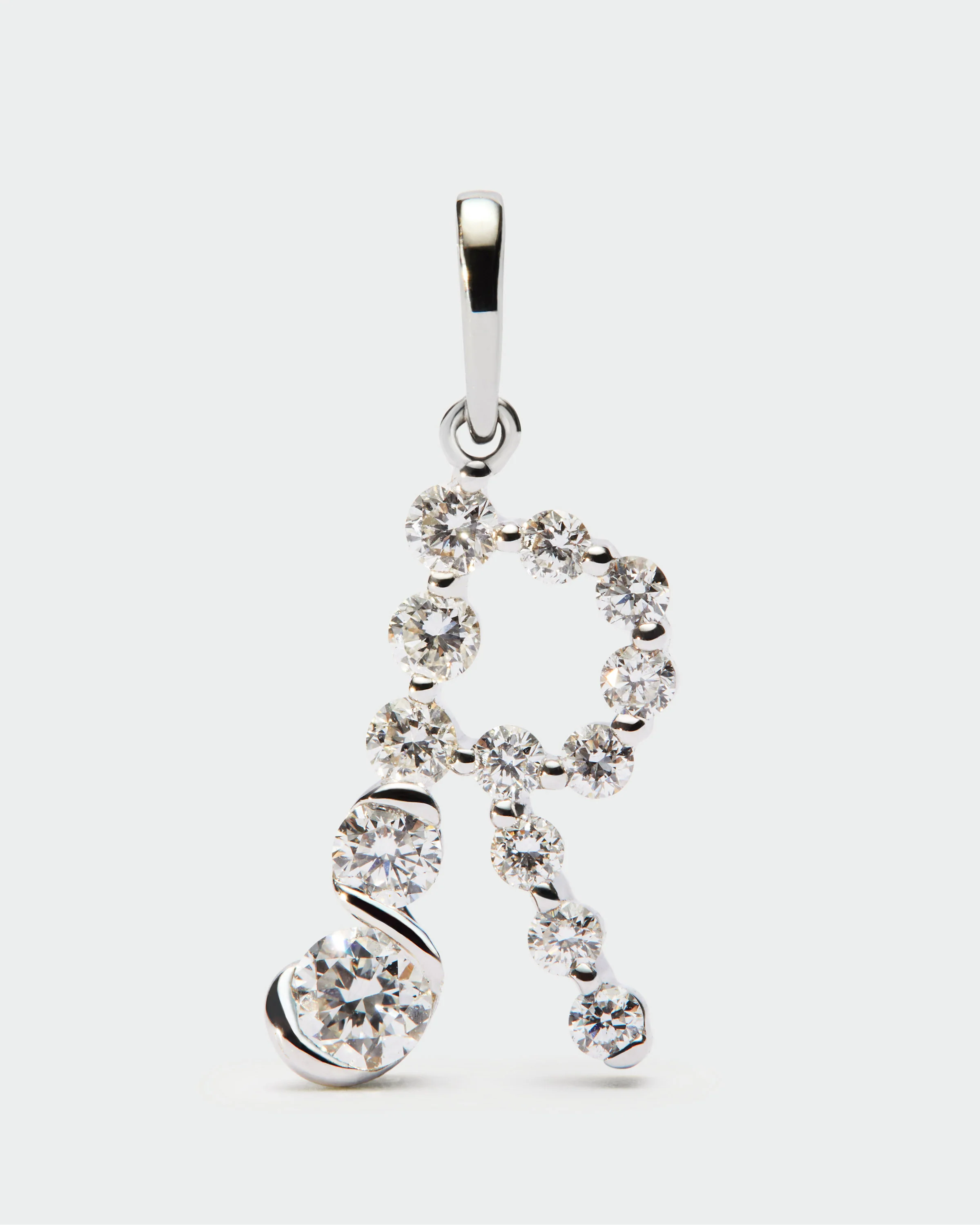 Diamonds and white gold R initial pendant