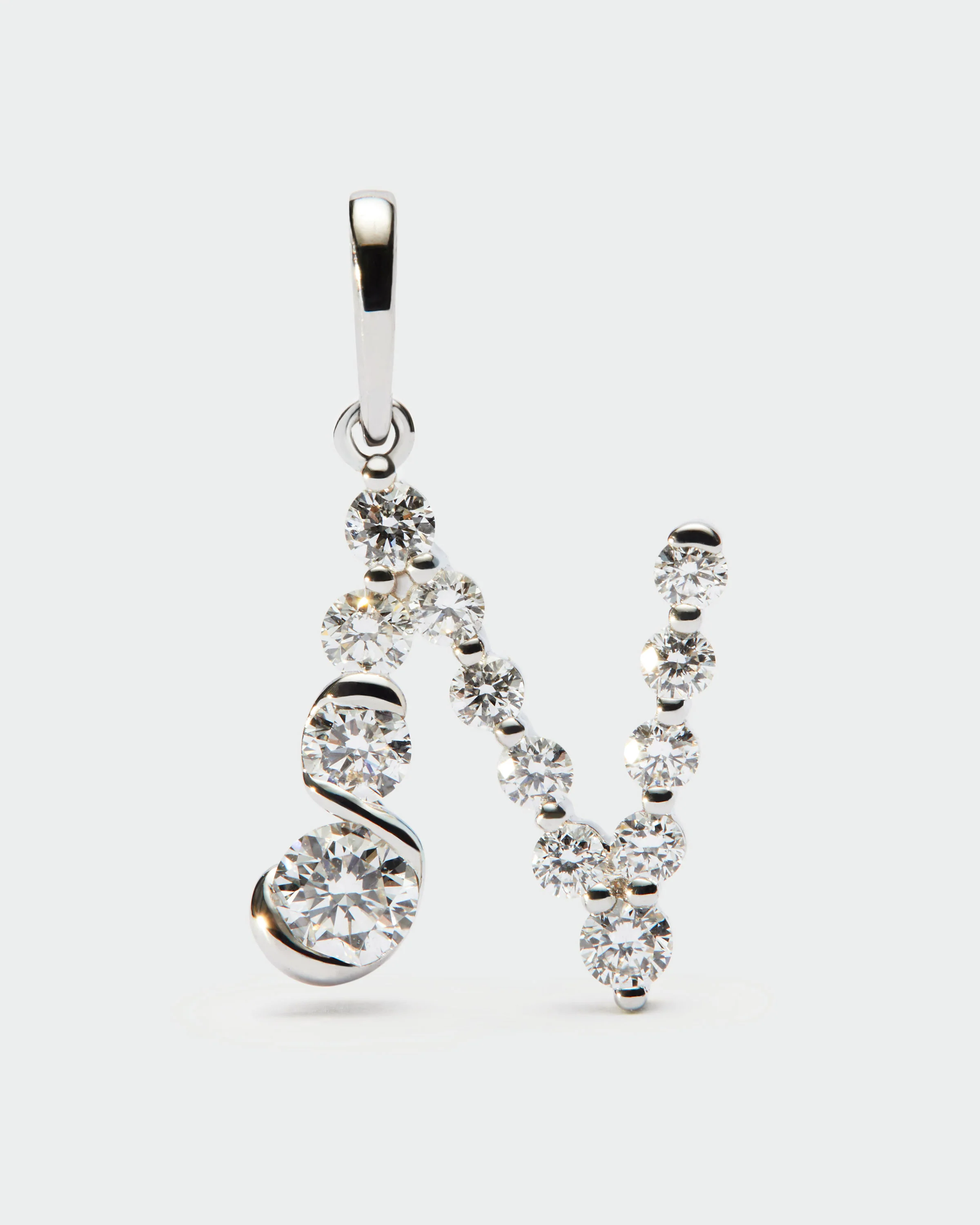 Diamonds and white gold N initial pendant