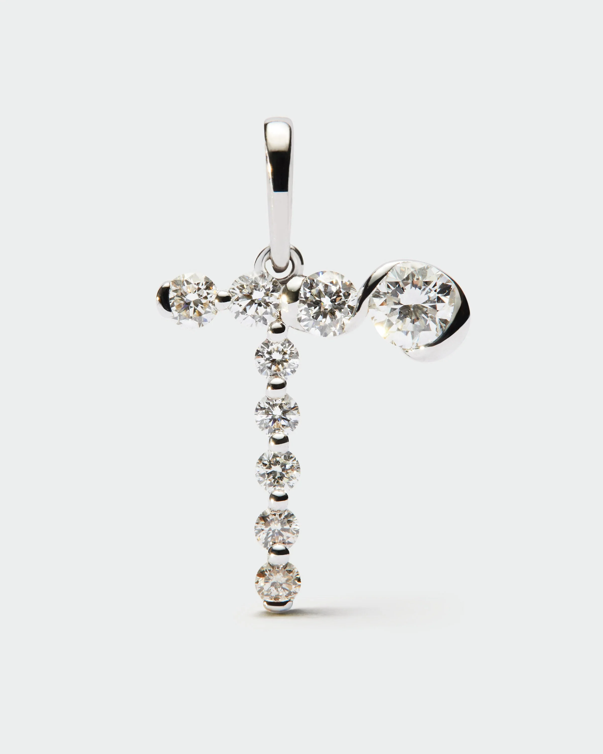 Diamonds and white gold T initial pendant