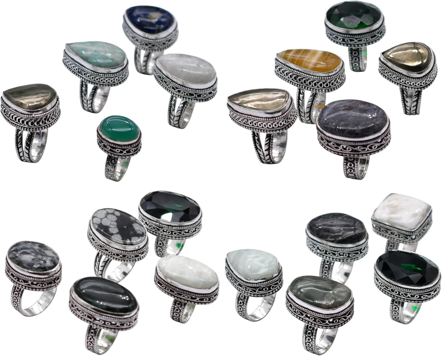 25 PCS Mix Gemstone Ethnic Handmade Ring Mix Lot US Size-5-9 R 9119 R 9119