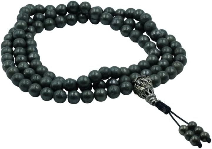 Garnet Stone Mala with White Metal Lotus Guru Bead, Prayer Beads, Meditation Jewelry, Handmade in Nepal