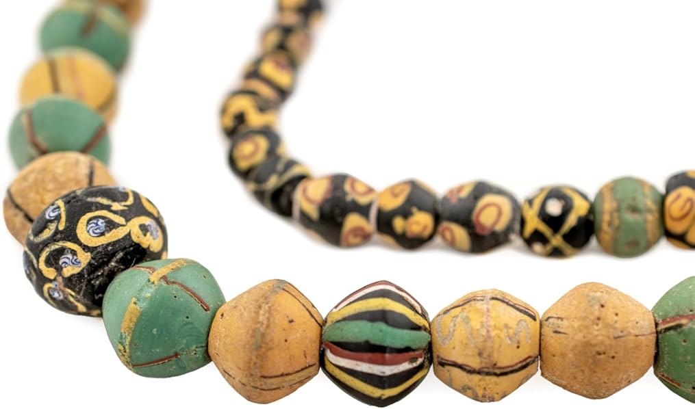 The Bead Chest Assorted Antique Venetian King Beads: Authentic African Trade Beads, Glass Bicone Multicolor Full Strand