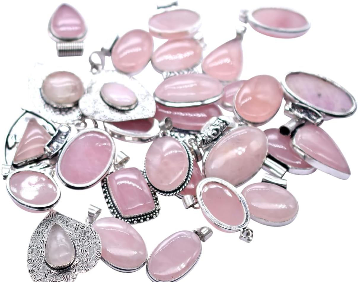 50 PCS Rose Quartz Gemstones Handmade Pendant Silver Plated Mix Lot P 9047 P 9047