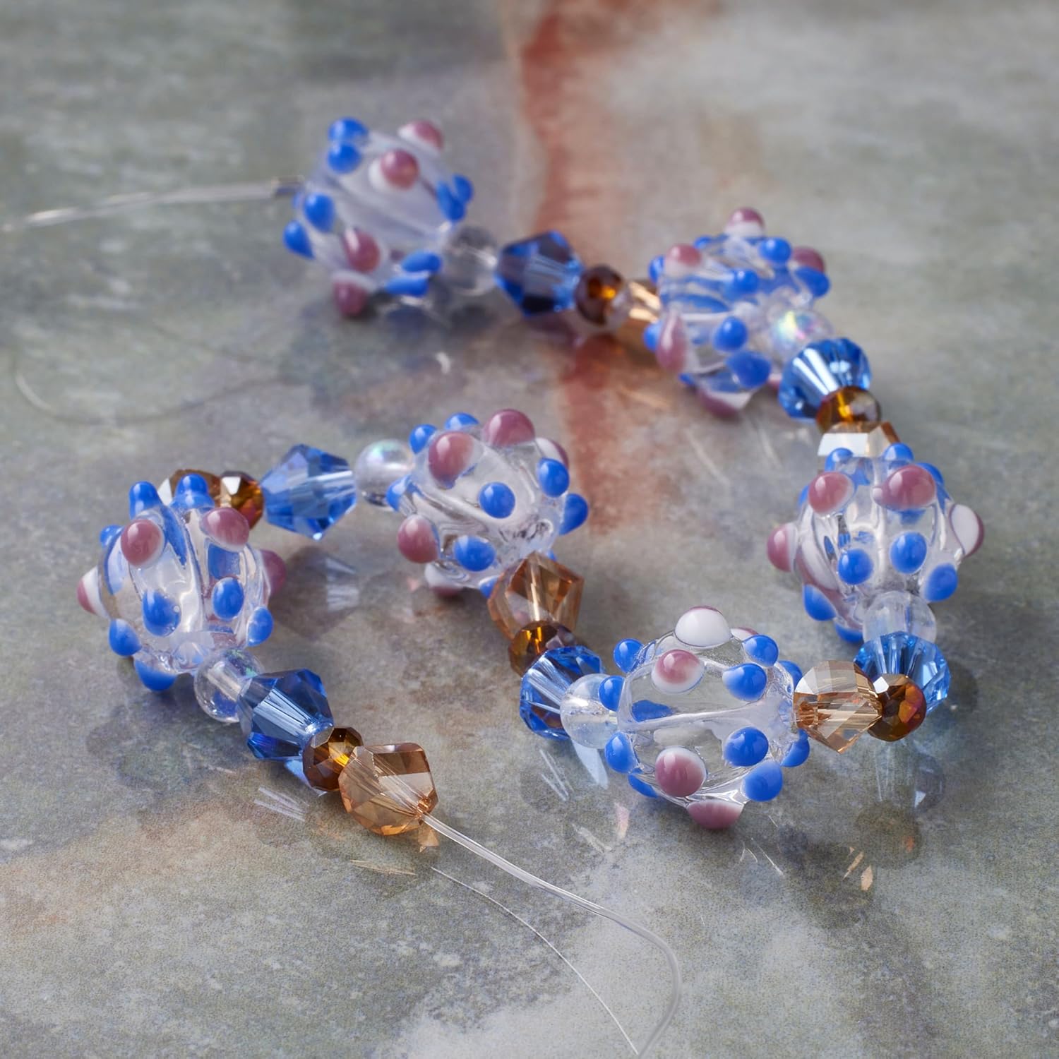 Bead Landing Blue Glass Lampwork Swirl Rondelle Beads - 12 Pack with Rondelle Spacers for Jewelry Making