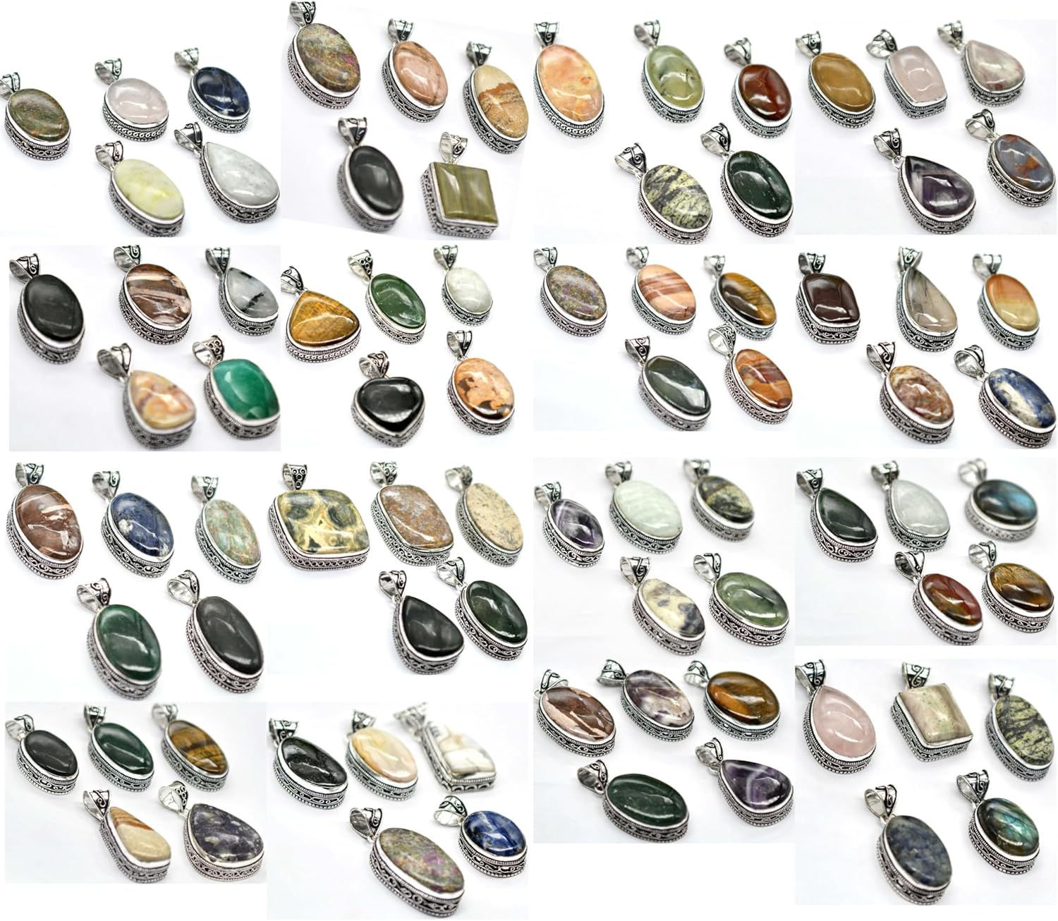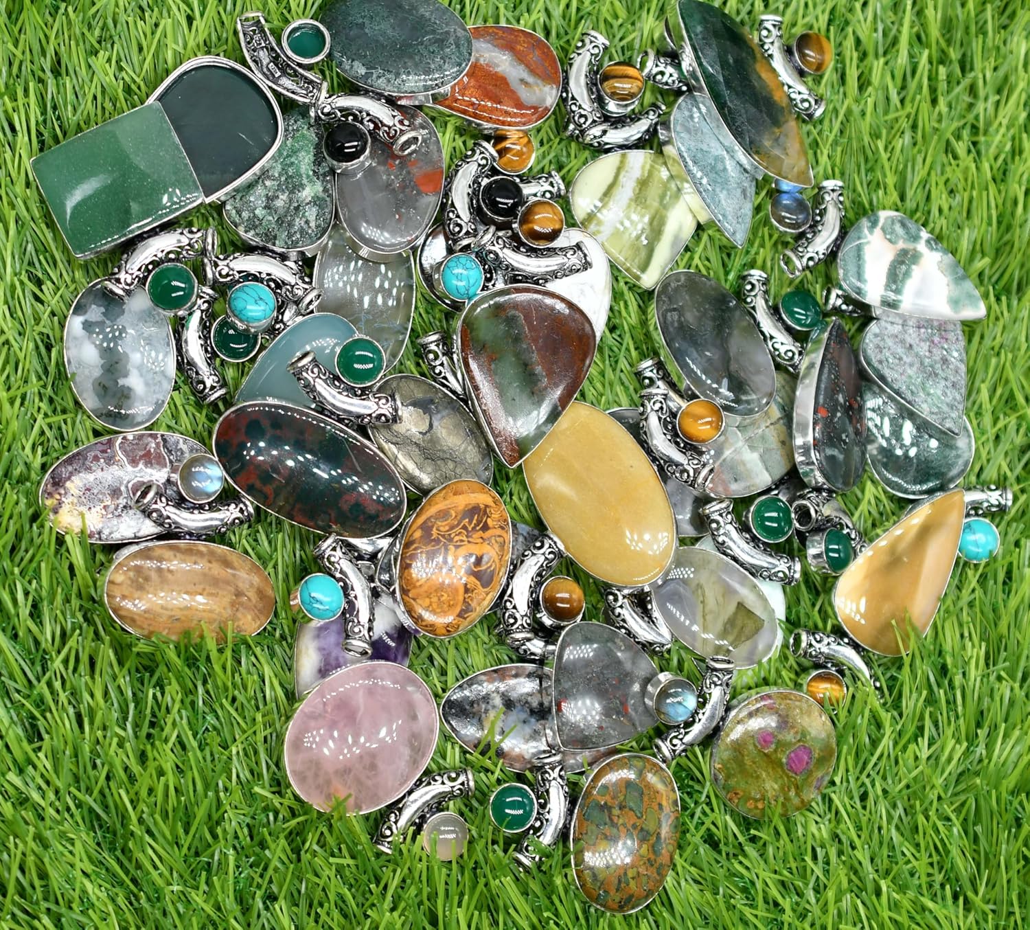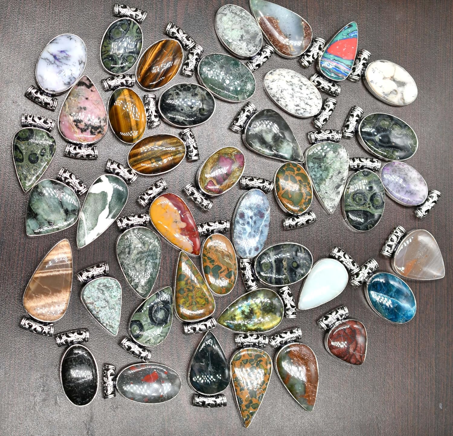 50 PCS Mix Gemstones Pendant Antique Silver Plated Mix Lot A125 P 8125