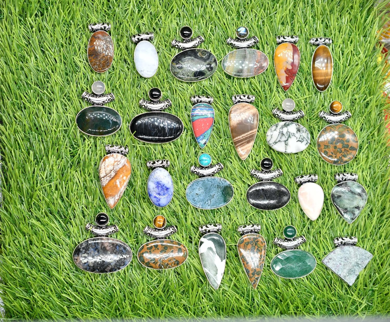 20 PCS Mix Gemstones Pendant Antique Silver Plated Mix Lot A123 P 8123