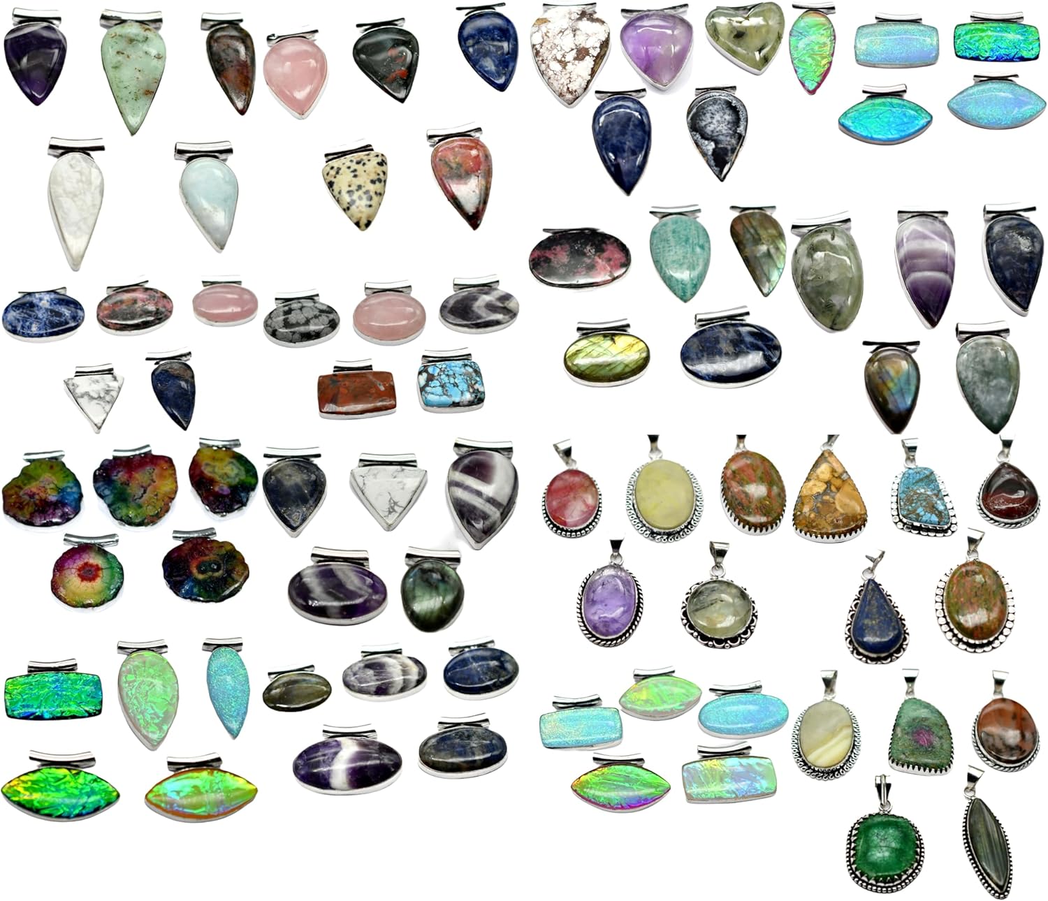 50 PCS Mix Gemstones Pendant Antique Silver Plated Mix Lot A101 P 8101