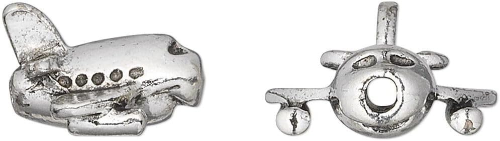 2 Antiqued Silver Plated Pewter 17x14mm 3D Airplane Beads with 1.8-2.5mm Hole