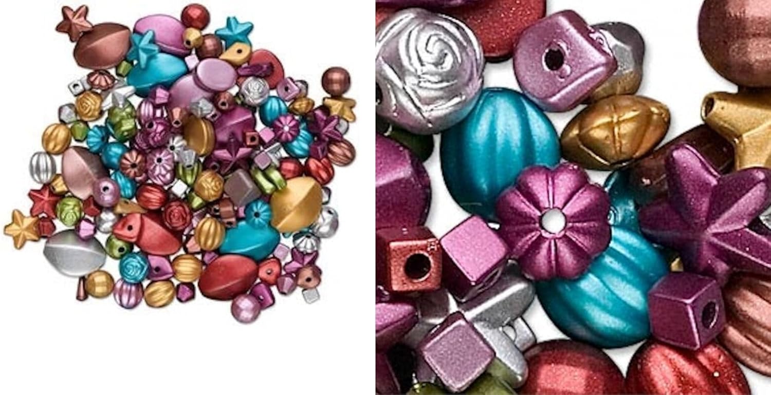 Satin Metallic Matte Acrylic Mixed Shape & Size Beads Approximately 1900 Beads *