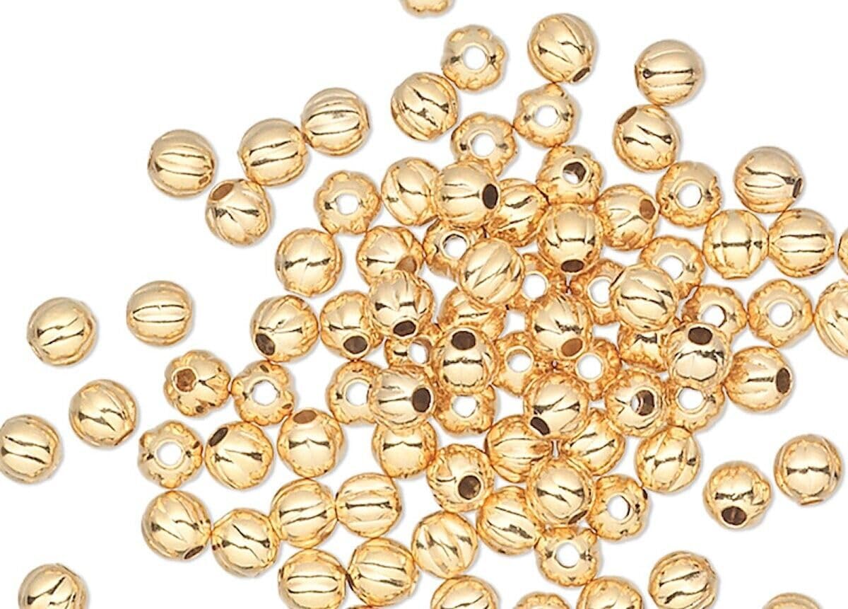 Bead, 1000 Gold Plated Brass 2.5mm Corrugated Round Beads with 0.4mm Hole