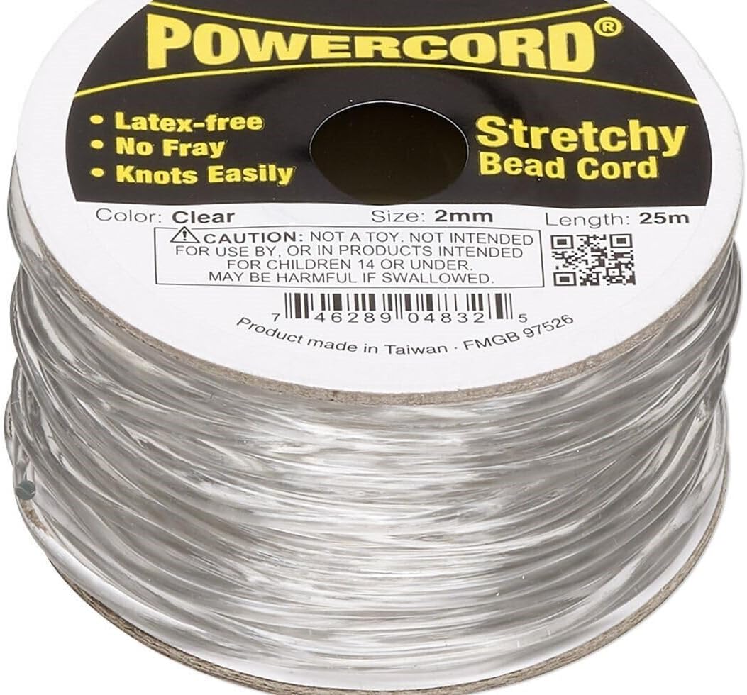 Powercord, 25 Meter Spool Clear No Fray Stretchy Elastic 2mm with 21.5lb Test