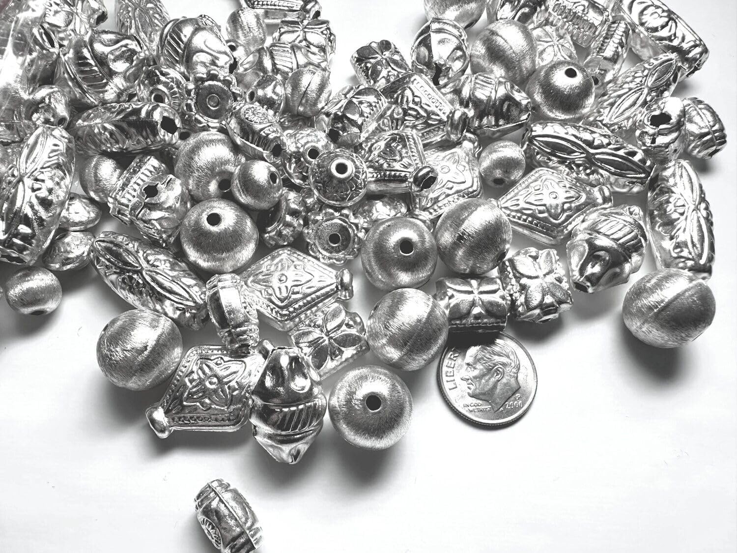 Bead, Silver Plated Brass 6mm-25x18mm Hollow Bead Mix 250 Grams(285-300 Beads)*
