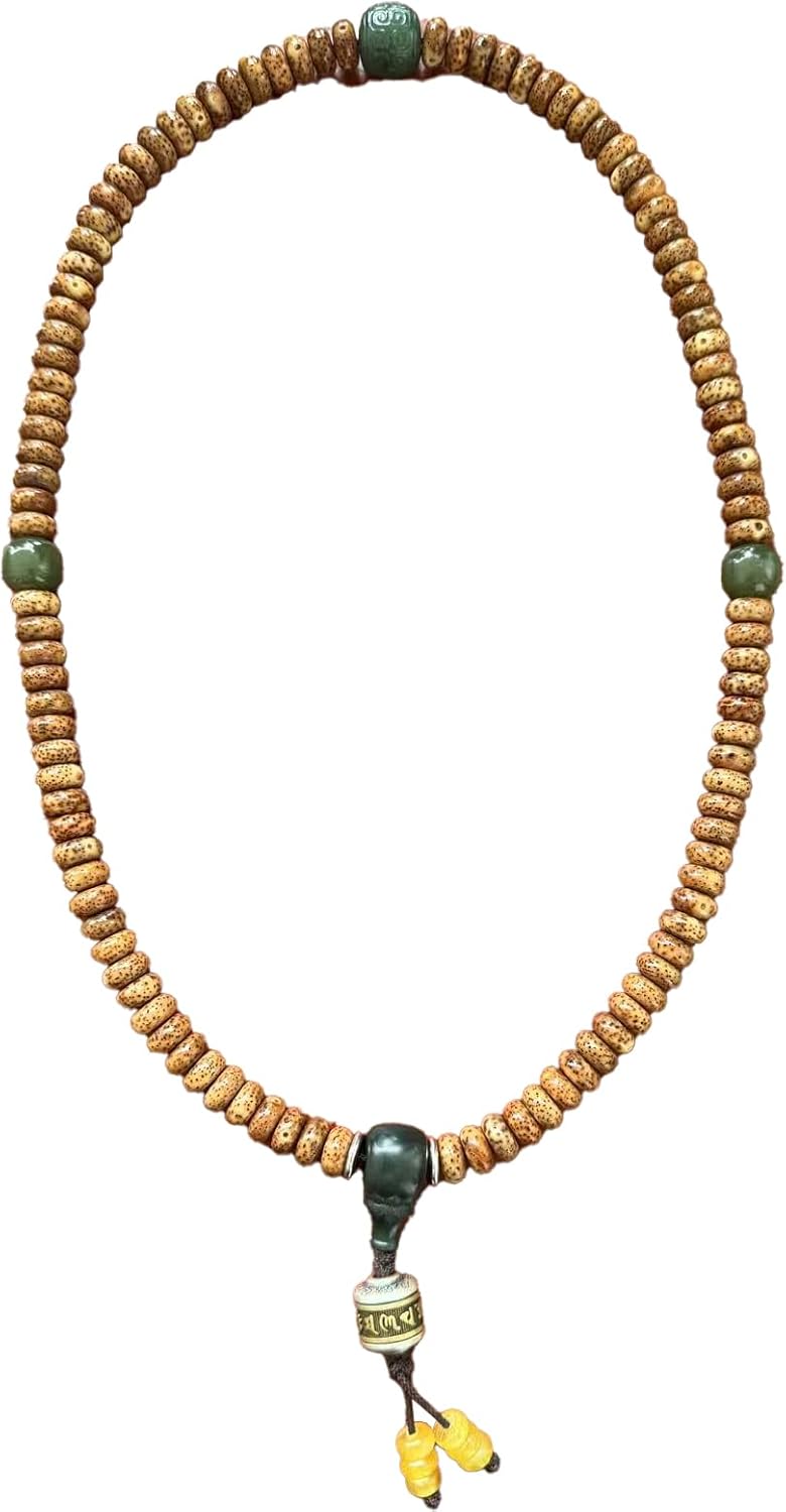 Traditional Tibetan Mala Prayer Beads, Bodhi Seeds with Jade and Carnelian, Decorative Gift Box