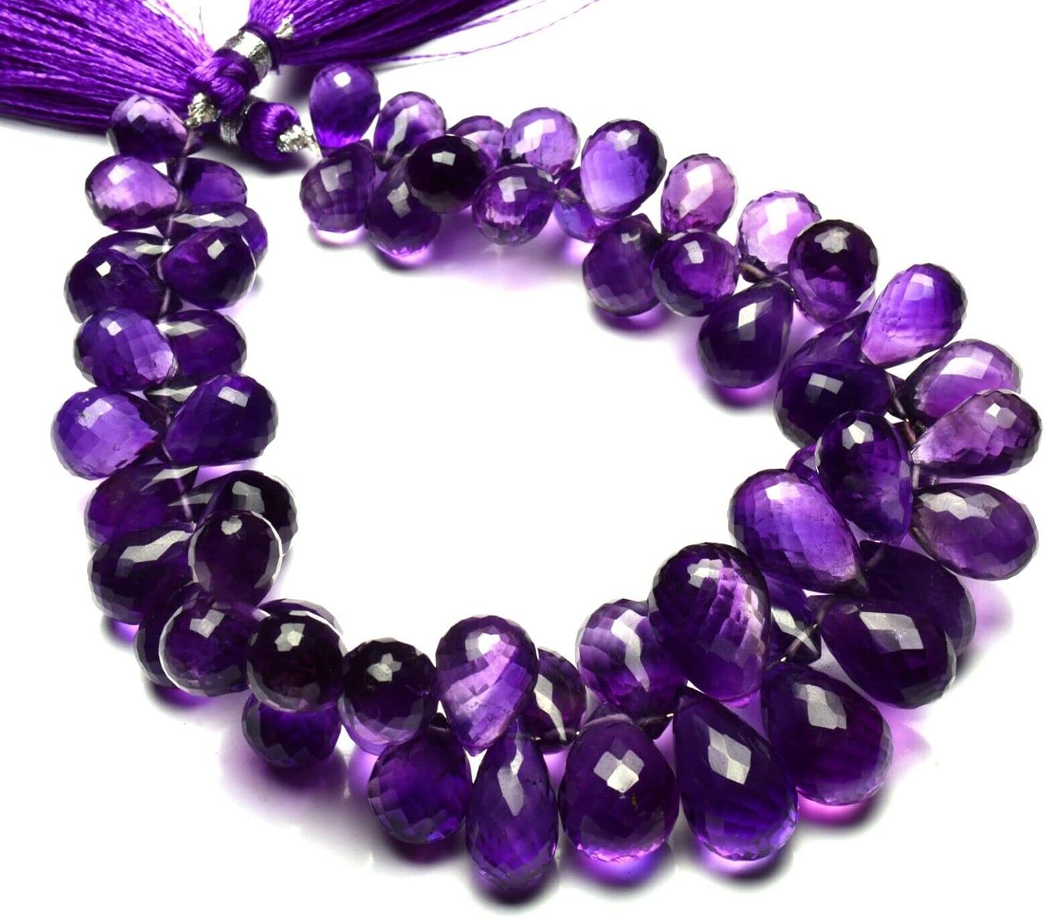8 inch Strand of Natural Amethyst 11-13mm Drop Faceted briolette Beads for DIY Jewelry Making. |BRIO_00116