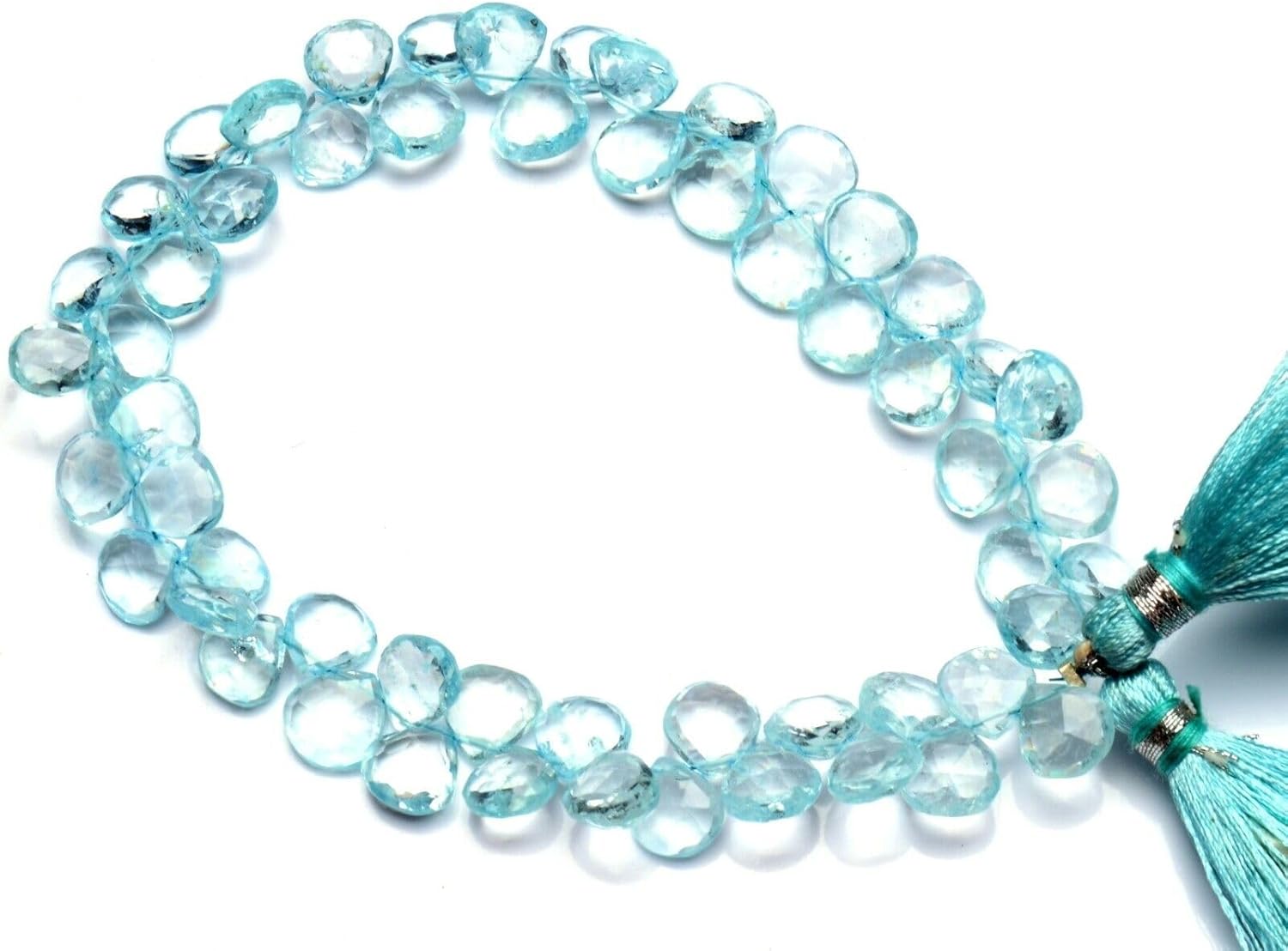 8 inch Strand of Natural Aquamarine 8.5mm Heart Faceted briolette Beads for DIY Jewelry Making. |BRIO_00616