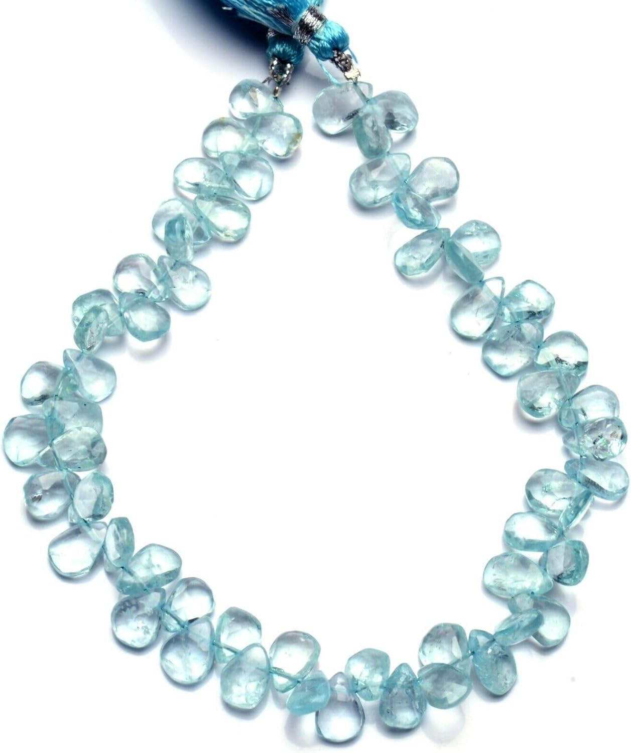 7 inch Strand of Natural Aquamarine 7x5x3mm Teardrop Faceted briolette Beads for DIY Jewelry Making. |BRIO_00704