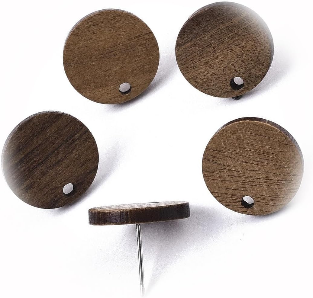 The New 100Pc 304 Stainless Steel Earring Posts Studs Tacks – 15Mm - Brown Wood - Circle Ideal for Creating Unique Accessories and Decorations FAVORo02212