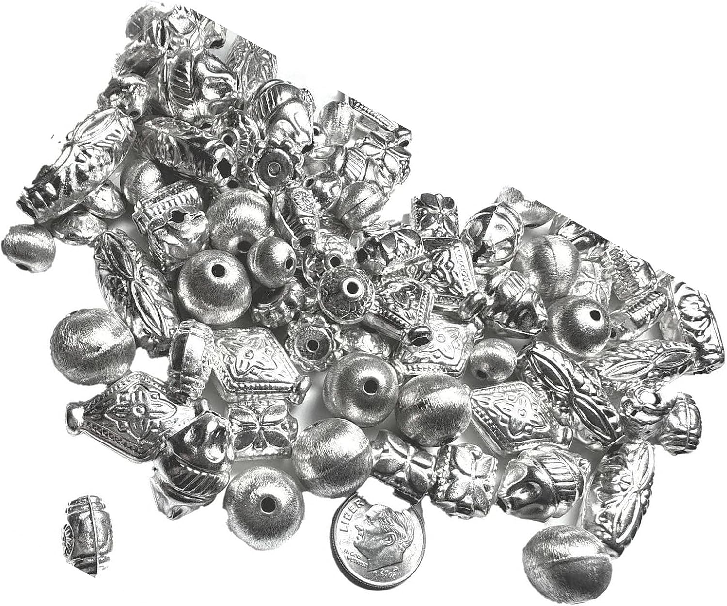 The new Bead, Silver Plated Brass 6Mm-25X18Mm Hollow Bead Mix 250 Grams(285-300 Beads) Ideal for Creating Unique Accessories and Decorations LULU0M06309