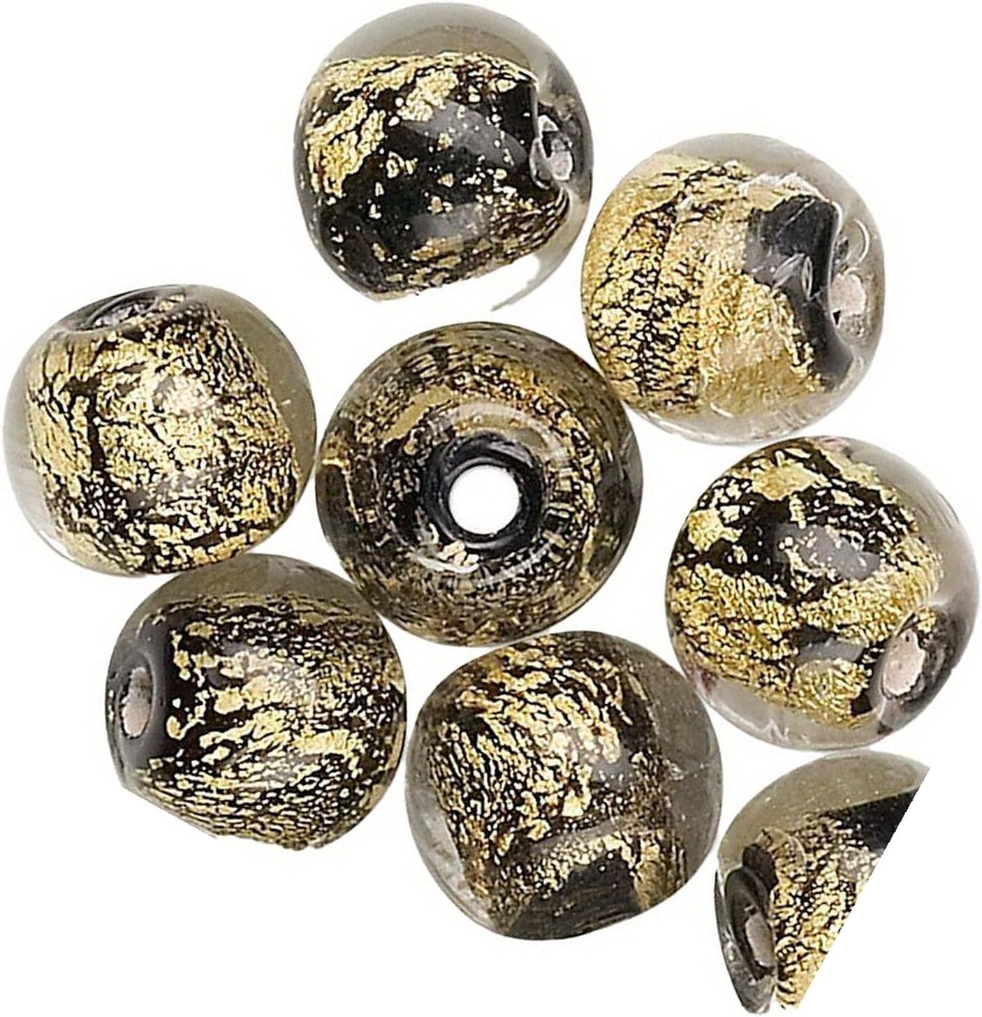 The new Bead, 10 Glass Black With Gold Foil In Clear 8Mm Round 1.5-2Mm Hole Ideal for Creating Unique Accessories and Decorations LULU0M06098