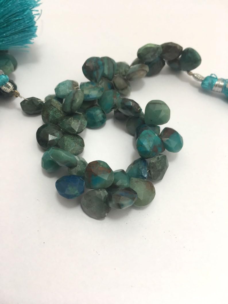 8 inch Strand of Natural Chrysocolla 9-10 mm Heart Faceted briolette Beads for DIY Jewelry Making. |BRIO_02230