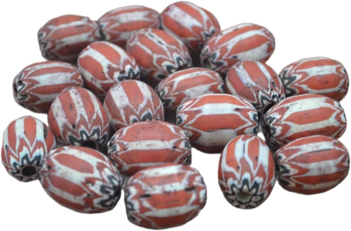 25 Pcs Red and White Stripe Glass Beading Beads Jewelry Crafting Art Beads Charms for Handmade Friendship Jewelry Bracelet Necklace DIY Crafts Beading Supplies Jewelry Making