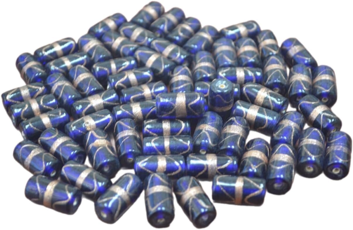 180 Pcs Dark Blue Stripe Glass Tube Beading Beads 2 Lbs Jewelry Crafting Art Beads Charms for Handmade Friendship Jewelry Bracelet Necklace DIY Crafts Beading Supplies Jewelry Making