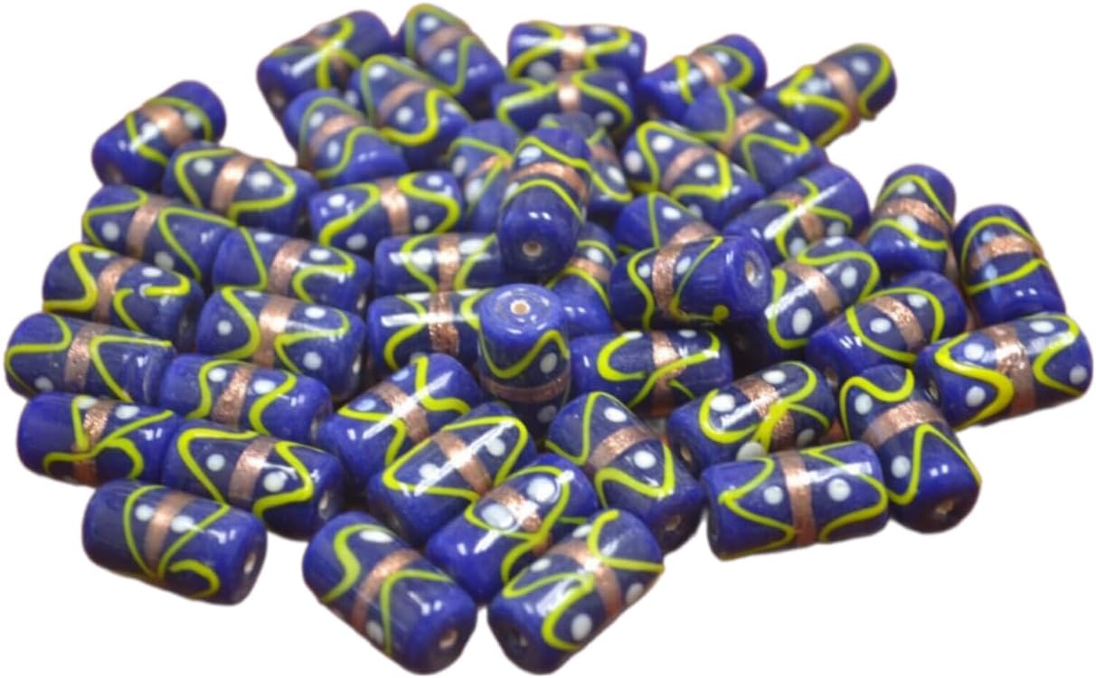 Generic 65 Pcs Blue and Yellow Stripe Old Glass Beading Beads Jewelry Crafting Art Beads Charms for Handmade Friendship Jewelry Bracelet Necklace DIY Crafts Beading Supplies Jewelry Making