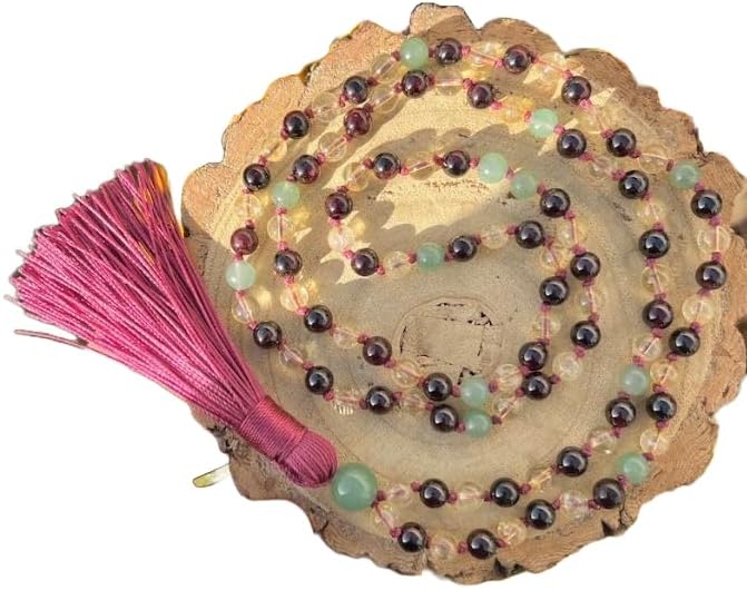 Natural Garnet, Citrine, Green Aventurine 6mm-8mm 108 Mala Beads, Spiritual, Meditation Beads, Reiki, Japa Mala, Buddhist Prayer Beads, Yoga Bracelet, healing beads LKMALA-RRGU-520