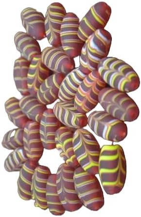 65 PCS Handmade RED & Yellow Stripe Feather Old Glass Beading Beads #BD-834 Fast Free Supply
