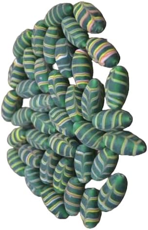 65 PCS Handmade Green & Yellow Stripe Feather Old Glass Beading Beads #BD-836 Fast Free Supply