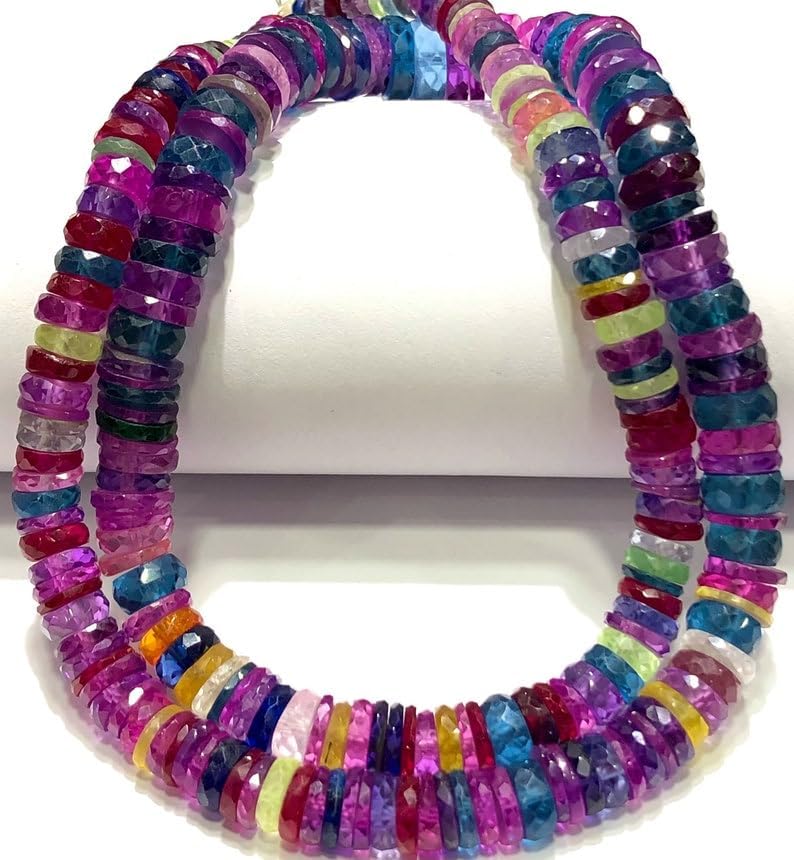 Natural Multi Sapphire roundelle facated Beads 5-7 MM 18 inch Long String Jewelry Making Gemstone Beads for Necklace Bracelet