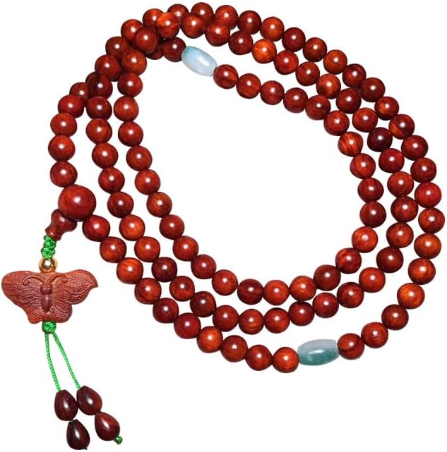 Mascot Wooden Crafts Wood Carving Art Wood Decoration Artwork 破茧化蝶小叶紫檀0.6 * 108颗鸡血红佛珠手串手链念珠 (破茧化蝶小叶紫檀8mm)