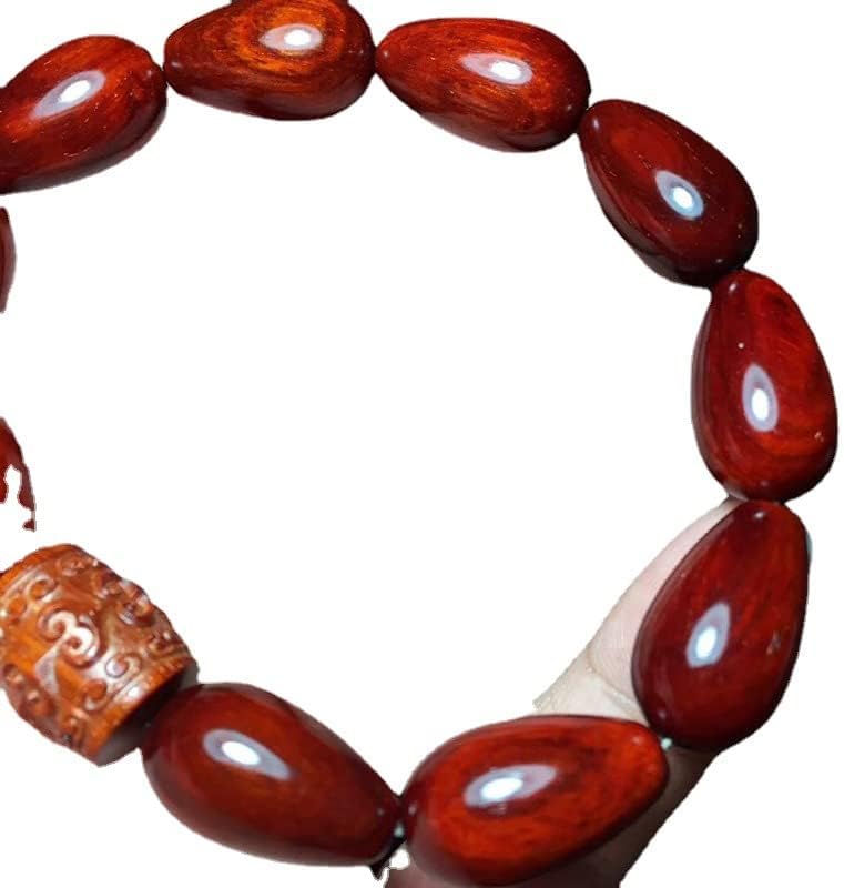 Mascot Wooden Crafts Wood Carving Art Wood Decoration Artwork 回纹珠小叶紫檀2.0 * 1.2水滴佛珠 高油密鸡血红玻璃底搭配桶珠(回纹珠小叶紫檀)
