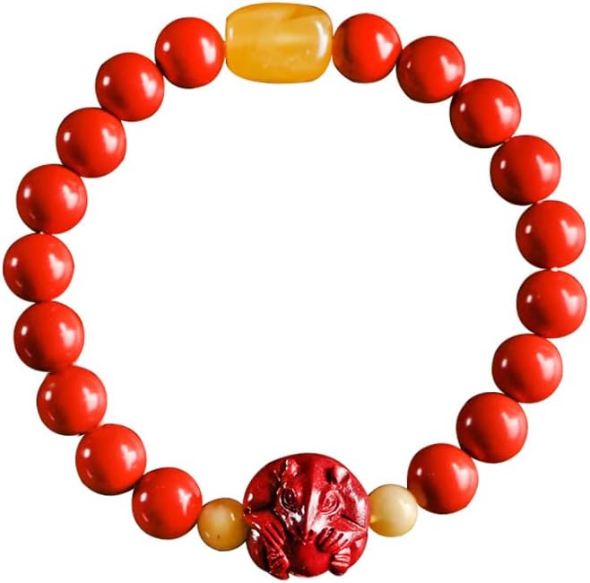 Mascot Exorcism Ward Off Evil Spirits Bring Lucky 原矿朱砂十二生肖手链男女民族风属鼠年红色帝王紫金砂蜜蜡手串(原矿朱砂 · 鼠)