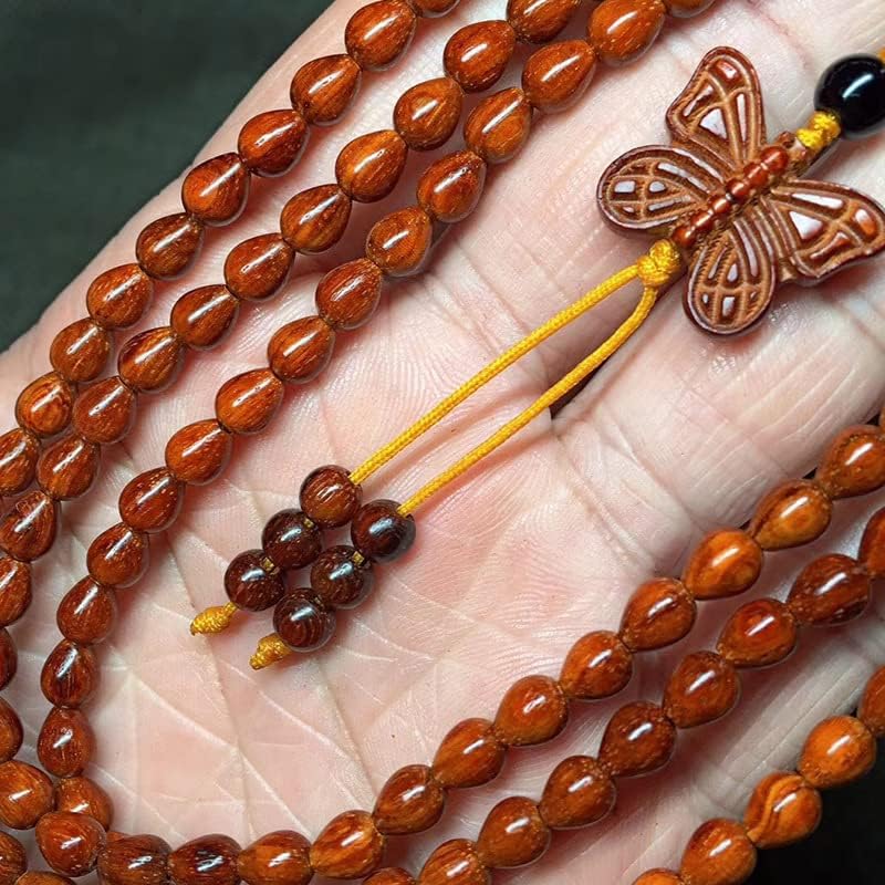 小叶紫檀3*5水滴带星珠子圆润光滑细腻搭配可爱蝴蝶女士(小叶紫檀水滴搭配蝴蝶款)