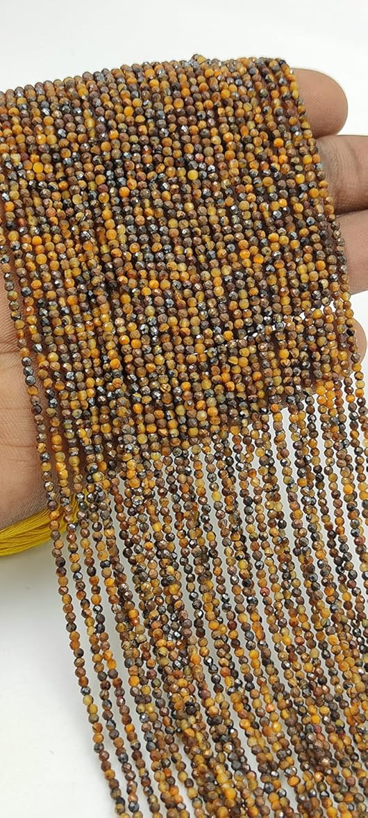 Hanumat Gems Lot of 10 Strands Natural Tiger's Eye Micro Cut Faceted Rondelle Beads,Tiger's Eye Faceted Beads,Tiger's Eye Rondelle Bead,Tiger's Eye Micro Cut Faceted Bead,2-2.5MM Tiger's Eye Beads