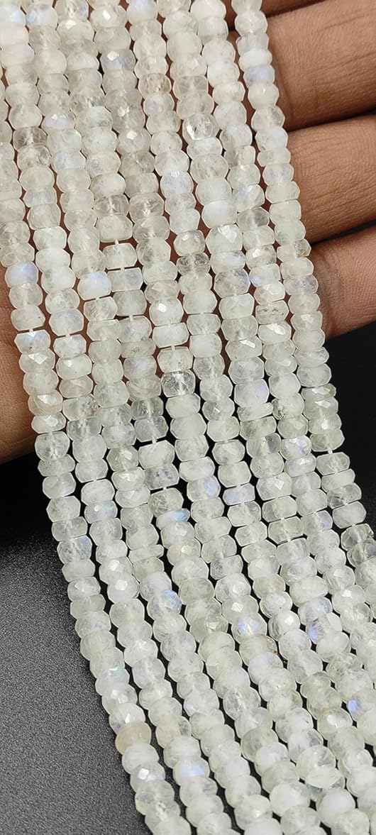 Hanumat Gems Lot of 2 Strand Beautiful Natural White Rainbow Faceted Rondelle Shape Gemstone Beads,Rainbow Rondelle Beads,Rainbow Faceted Beads,5.00-6.00 MM Beads,13 Inches Strand