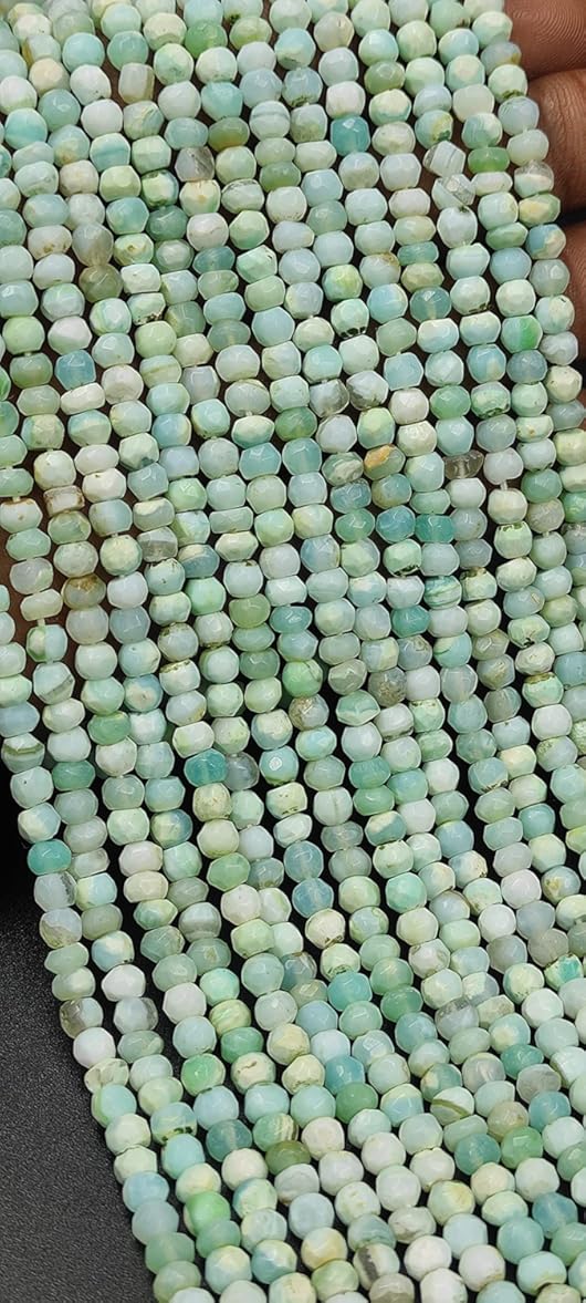 Hanumat Gems Lot of 10 Strands Peruvian Blue Opal Rondelle Faceted Gemstone Beads,Peruvian Opal Faceted Beads,Peruvian Opal Rondelle Beads,3.00-4.00 MM Beads,13 Inches Strand.