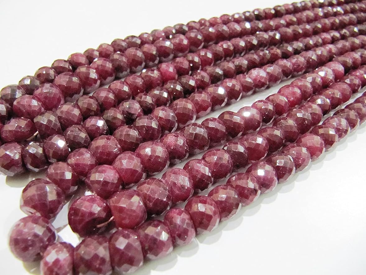 Hanumat Gems Lot of 2 Strand Natural Corundum Ruby Faceted Rondelle Beads Micro Faceted 7to10mm Beads Strand Courandam 8 Inches Strand