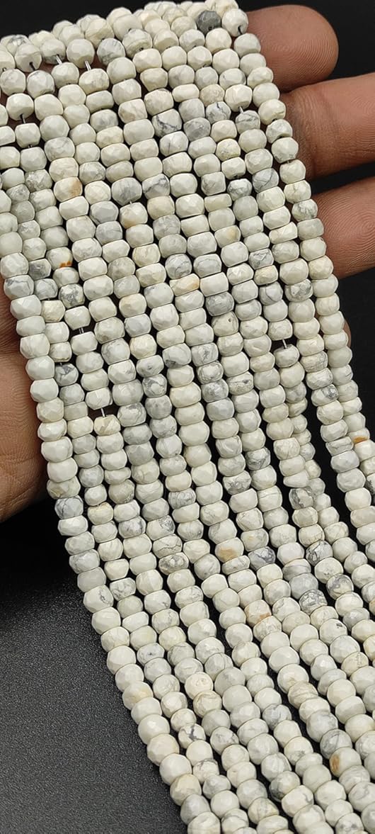 Hanumat Gems Lot of 10 Strands Beautiful Natural White Howlite Faceted Rondelle Shape Gemstone Beads,Howlite Rondelle Beads,Howlite Faceted Beads,5.00-6.00 MM Beads,13 Inches Strand
