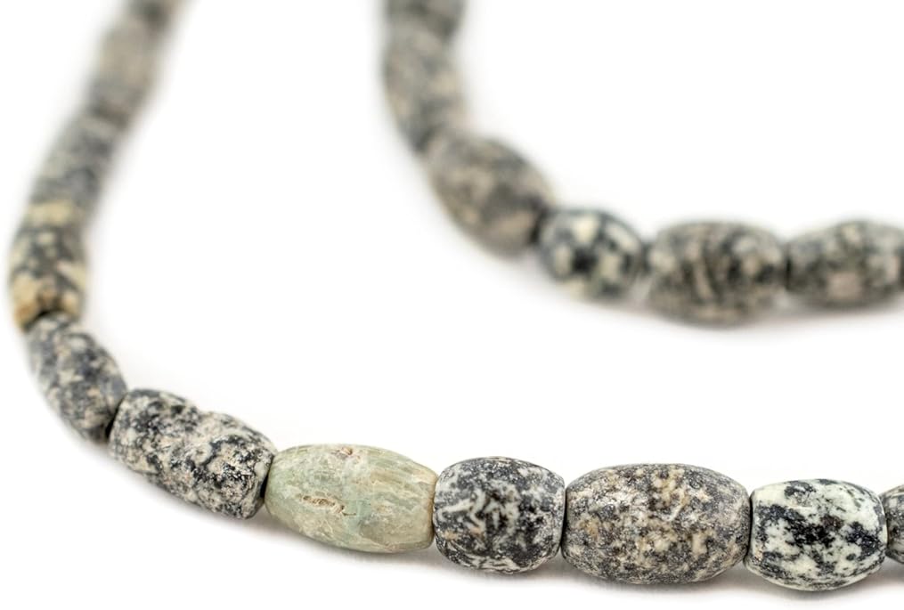 The Bead Chest Ancient Oval Mali Granite Stone Beads 11mm African Grey Large Hole 28 Inch Strand Handmade