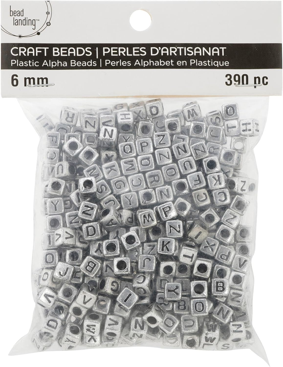 Bead Landing 390 Count (4,680 Total) 6mm Silver Alphabet Cube Crafting Beads, Pack of 12