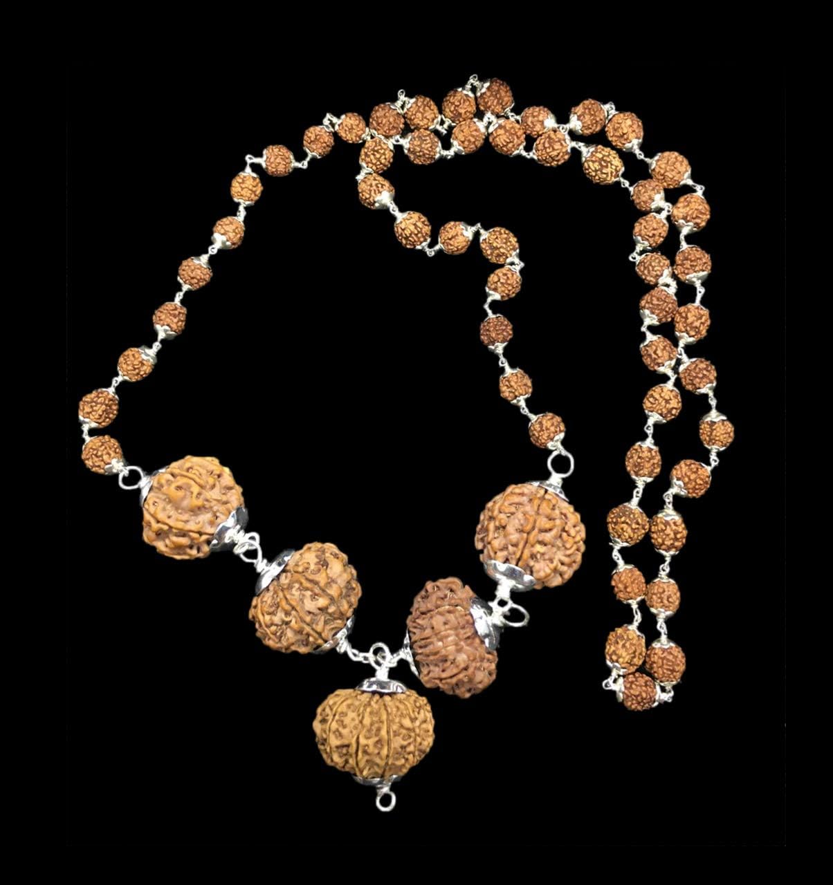 Rudraksha Combination for Business Power (Executives & Businessmen) 7,7,8,11,12 Mukhi Nepal in Silver Chain IGL Lab Certified (Collecter)