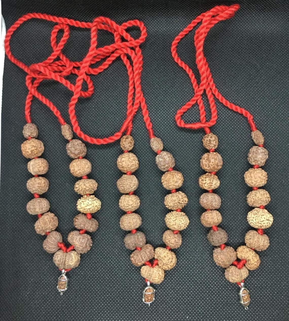 Siddha Mala Rudraksha in Thread (1-14 Mukhi, Ganesh, Gaurishankar) Indonesian Origin Medium Size Beads Lab Certified