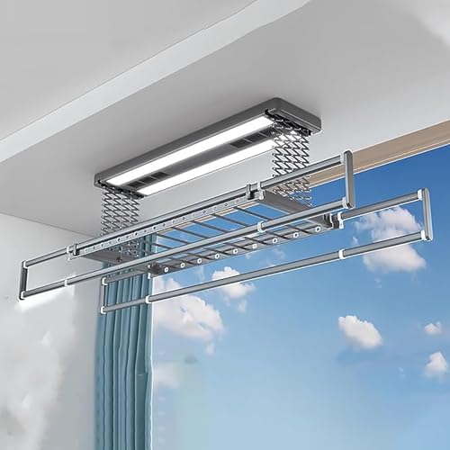 Ceiling Clothes Dryer Aluminium and Steel Electric Clothes Dryer with Remote Control,Ceiling Mounted Clothes Drying Rack, Electric Clothes Drying Rack with Remote Control & Led Light Alumini