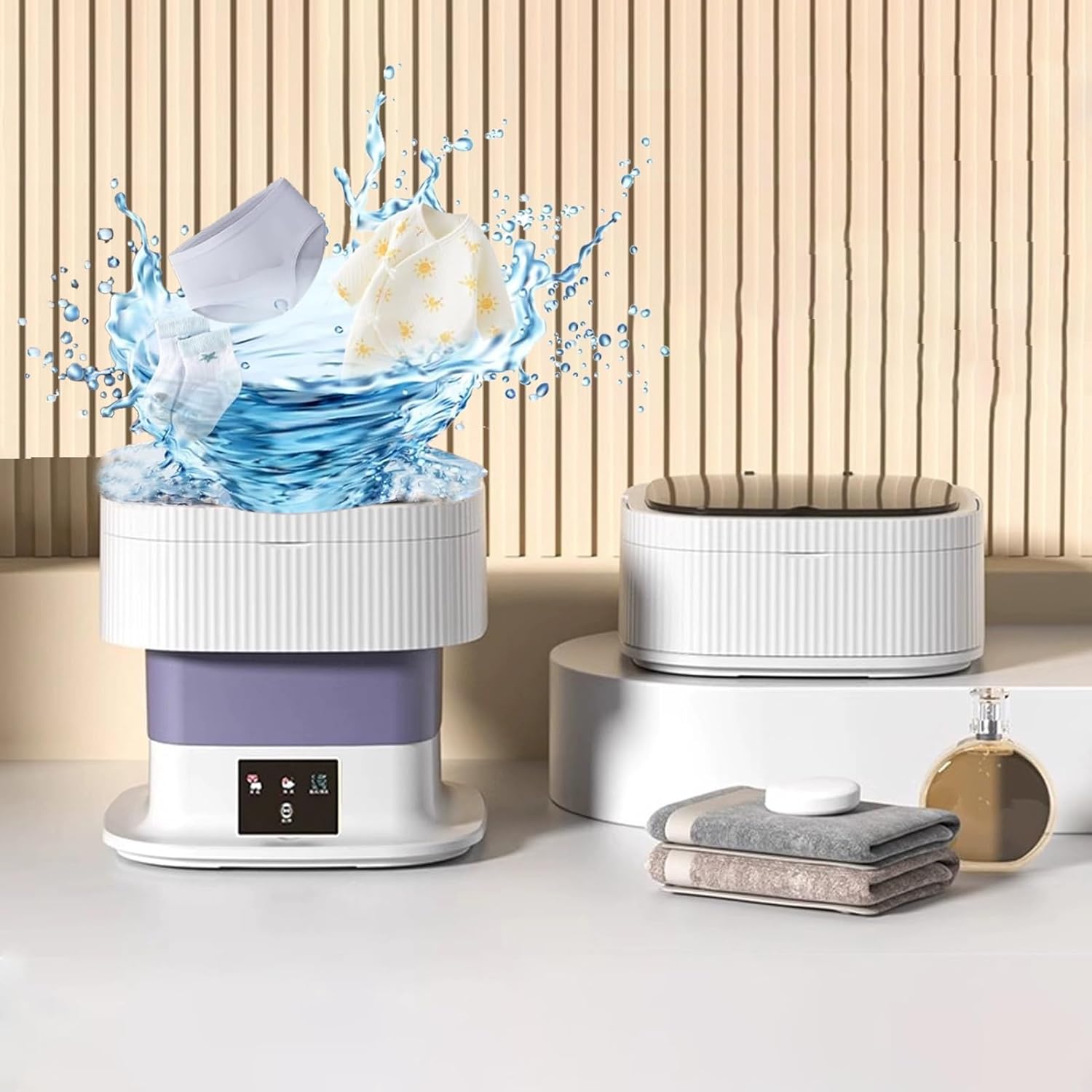 Portable Washing Machine,Mini Washer, 2-in-1 Smart Foldable Collapsible Washer, Small Washing Machine, for Baby Clothes, Underwear, Travel & Camping(Purple,16L)
